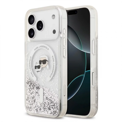 Накладка Lagerfeld для iPhone 17 Pro Max Liquid Glitter NFT Karl & Choup Heads Hard (MagSafe), Прозрачная (KLHMP17XLGKCSGH)