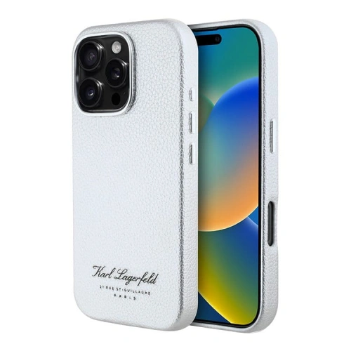 Накладка Lagerfeld для iPhone 16 Pro Full Wrapped Grained leather & Metal Camera Hard (MagSafe), Black (KLHMP16LPGMSRPK)