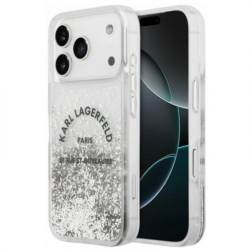 Накладка Lagerfeld для iPhone 17 Pro Max Liquid Glitter RSG logo Hard, Серебряная (KLHCP17XLCRSGPS)